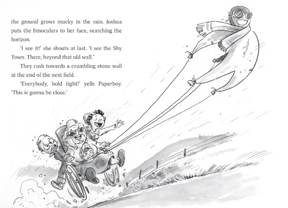 Along with his fearless and fun-loving neighbour and his no-nonsense grandmother, Senan sets out to find the Shy Town. On their epic adventure they encounter wild storms, a boy made of paper, a nervous, beetle-like creature with remarkable abilities – and a mysterious town with an incredible secret.
